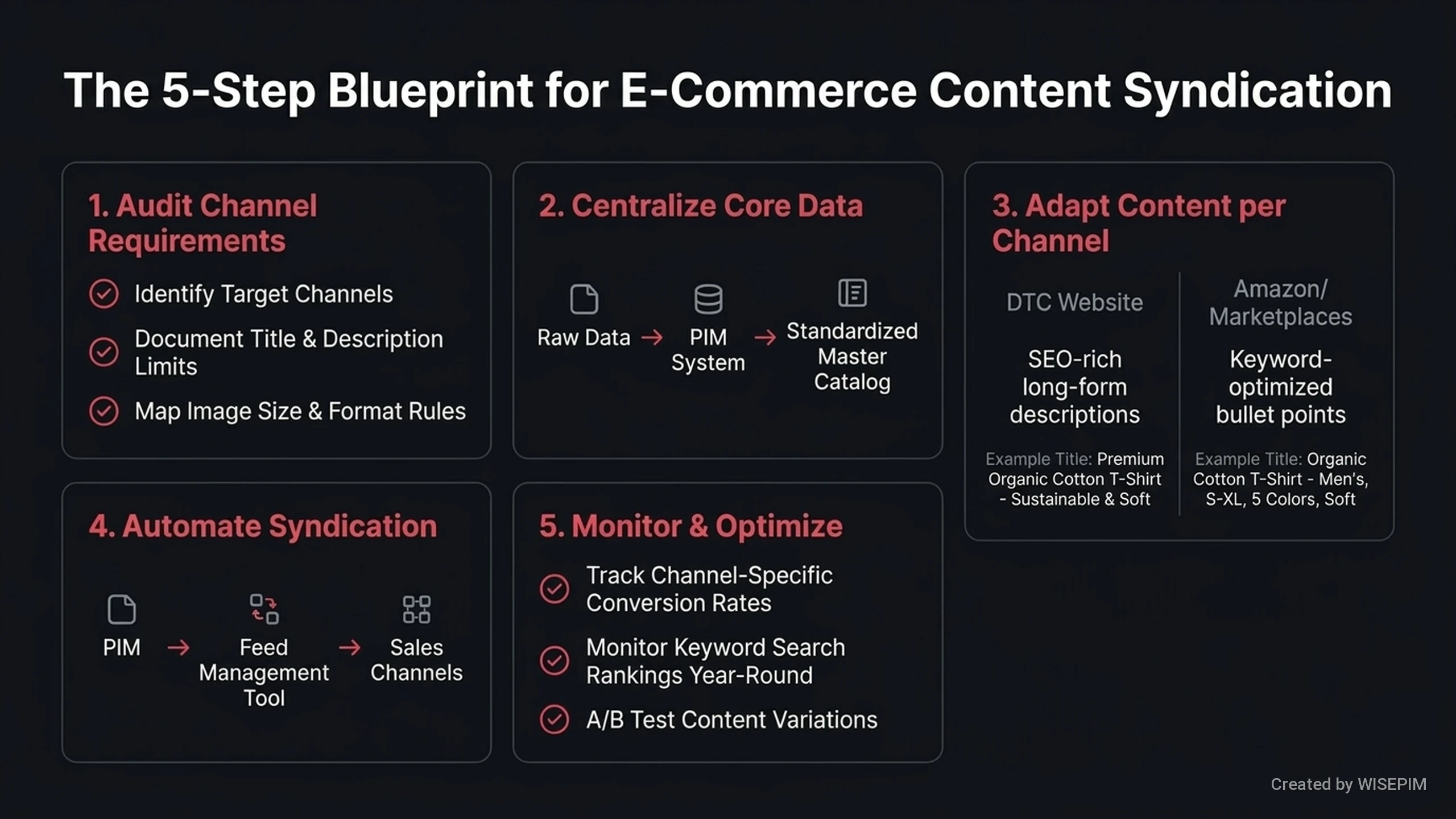 - WISEPIM checks if your content meets channel rules before you publish it. This prevents errors and stops marketplaces from rejecting your products.