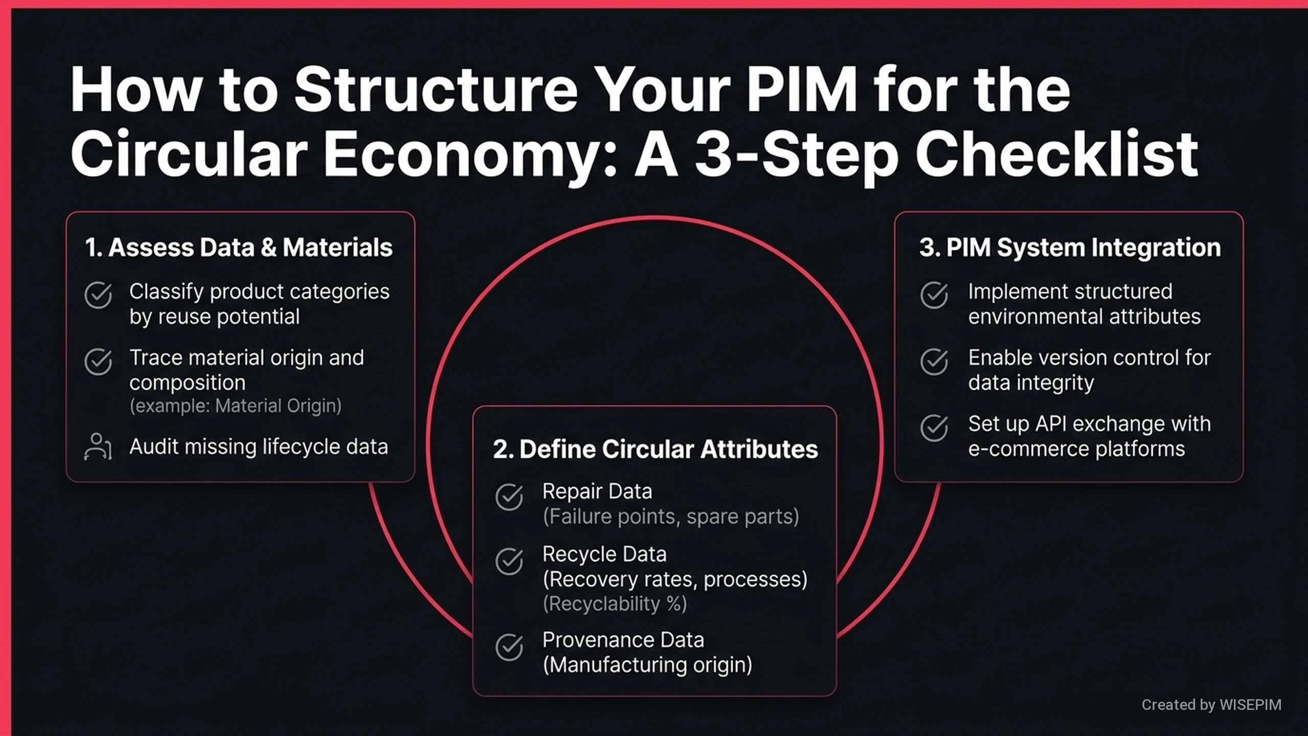 A Circular Economy Data Model is a framework that tracks a product's lifecycle from creation to reuse. E-commerce brands need this model to follow new laws like the EU Ecodesign for Sustainable Products Regulation (ESPR). It helps you provide honest sustainability details to shoppers who care about the environment. By using structured data on how to repair or reuse items, you can easily launch new services like resale shops. This model also makes handling returns and recycling much more efficient. When a customer returns a product, your PIM system shows exactly what materials it contains and how to take it apart. This reduces the time and cost of sorting items for recycling. Using a tool like WISEPIM ensures your environmental claims are based on real data. This protects your brand from greenwashing risks by proving your products are truly sustainable.