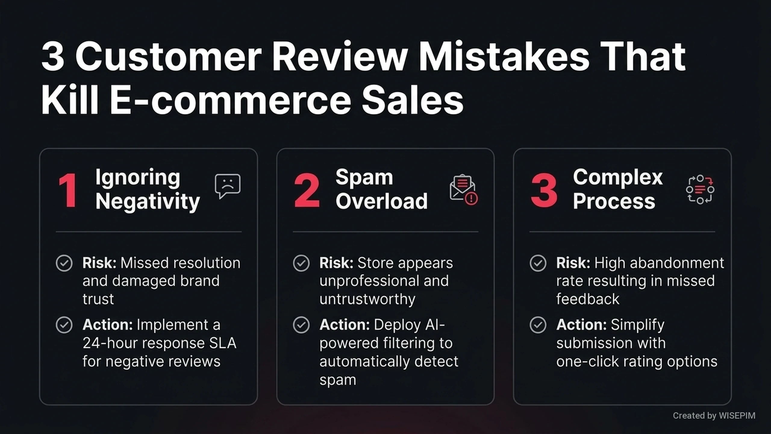 - Centralized review management means WISEPIM collects all feedback in one spot. It connects these reviews directly to your product data.