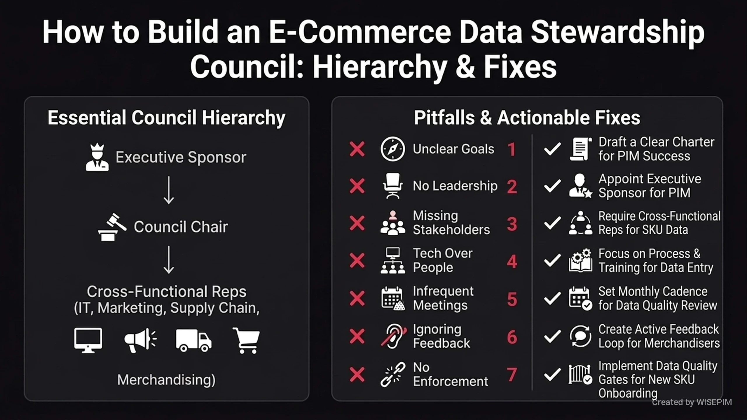 - 4The council decides which team owns specific data when marketing and merchandising departments disagree. This process clarifies who is responsible for every piece of product content.