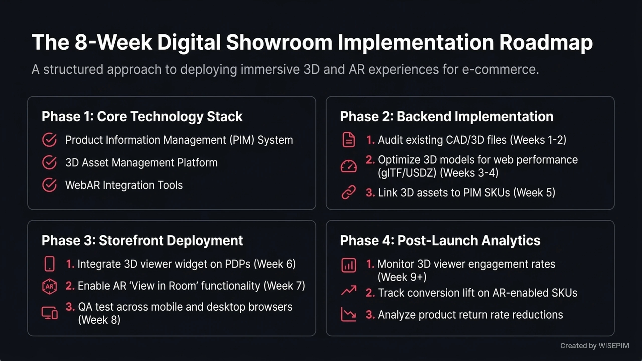 A digital showroom is an immersive online platform showcasing products interactively, often using rich media and 3D models. PIM provides the essential product data.