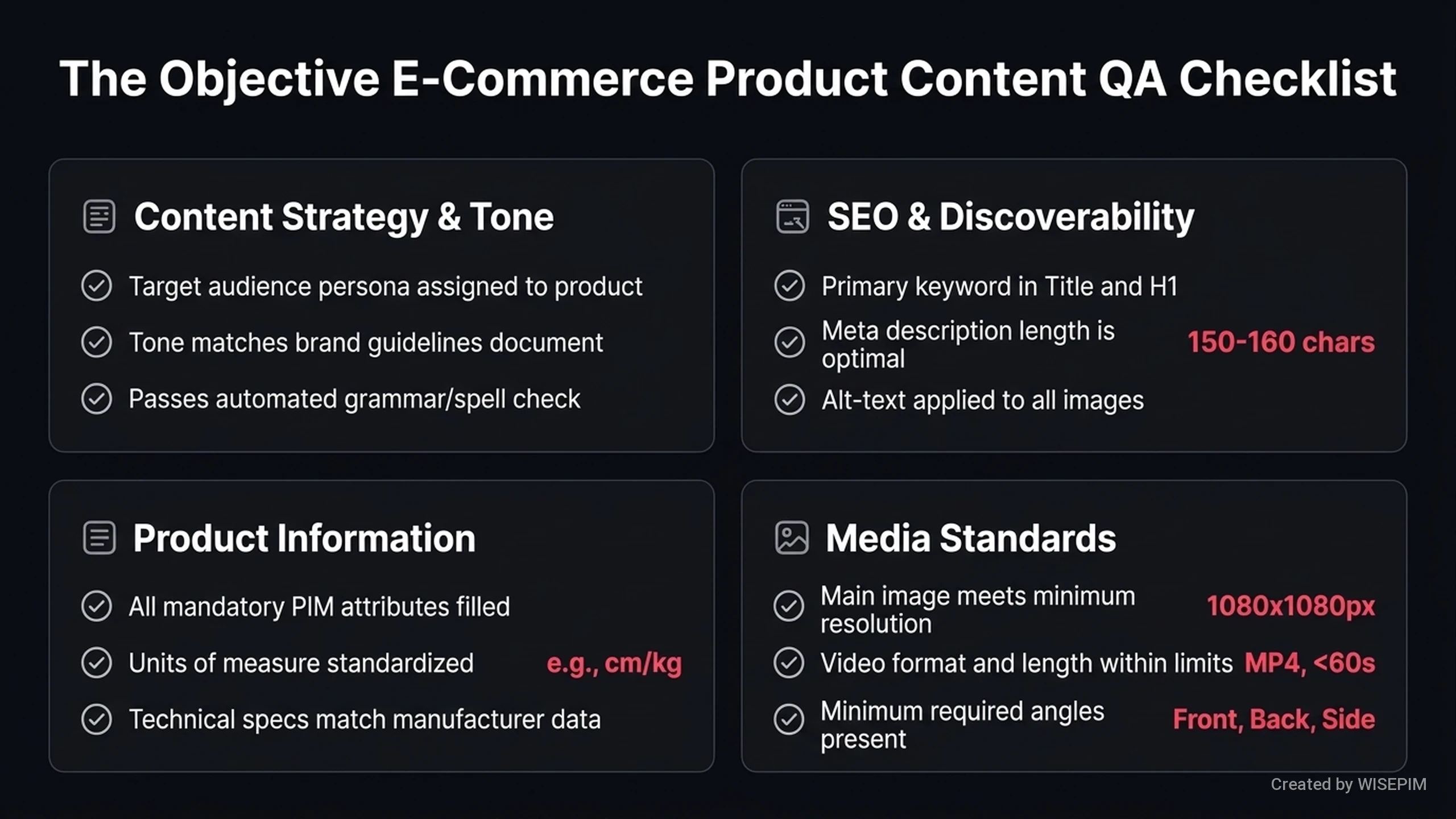 - WISEPIM uses templates and validation rules to keep your product data consistent. It automatically checks that every item follows your brand rules to ensure a professional look.