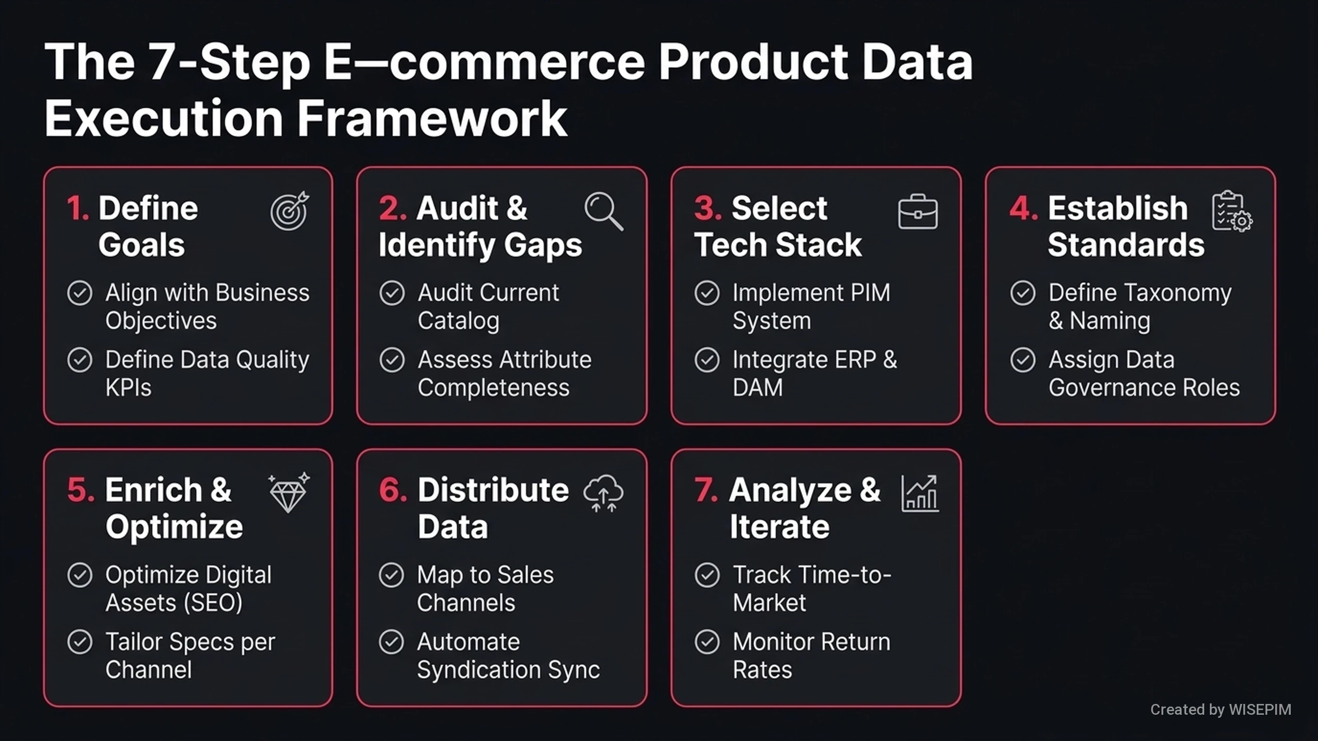 An overarching plan defining how product data is acquired, managed, enriched, and distributed to achieve e-commerce business goals.