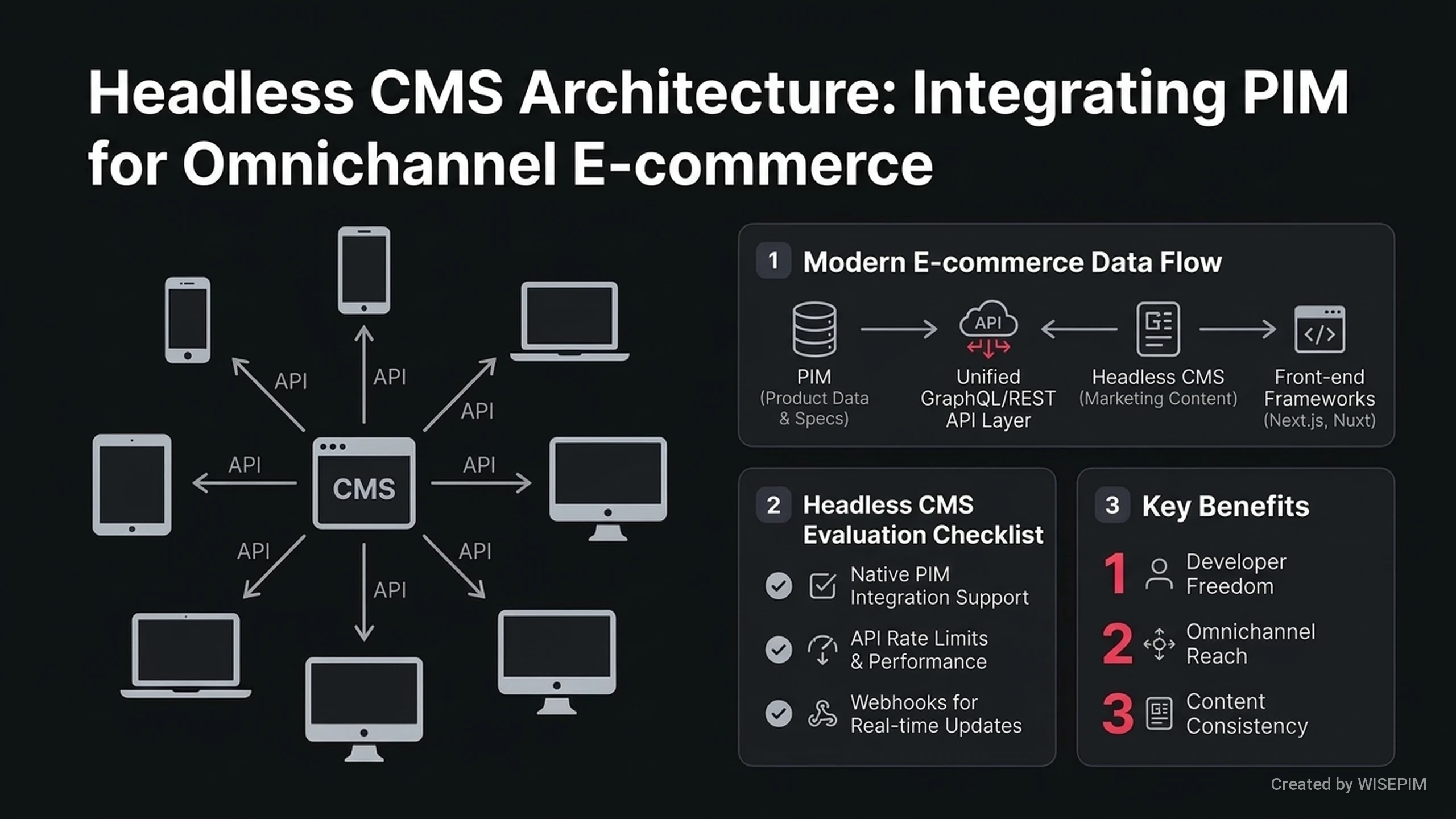 A Headless CMS is a content management system that separates where content is stored from where it is shown. This allows businesses to send marketing text, blog posts, and images to any device or screen. Customers shop using phones, smartwatches, and apps. A headless system ensures they see the same message everywhere. Marketing teams only need to update content once to change it across all platforms. Connecting a Headless CMS with a PIM system like WISEPIM helps manage a store more effectively. The PIM handles technical product details like SKUs and prices. The CMS manages the stories and descriptions that sell those products. This setup lets you build fast websites without being stuck with rigid templates. It also improves site speed and search engine rankings. Faster sites lead to more sales and better customer experiences.
