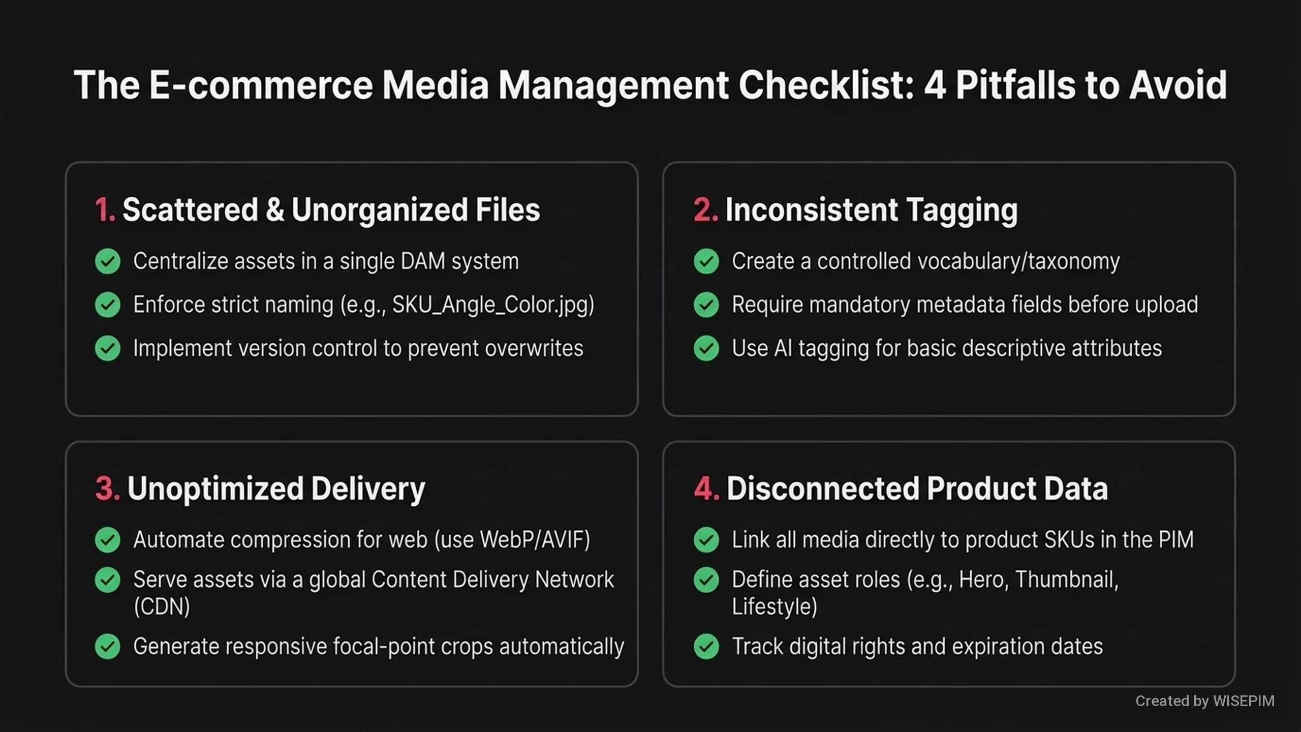 High-quality photos and videos help customers decide what to buy. Since online shoppers cannot touch products, they rely on visuals to understand features. Poor or missing images cause confusion and lead to more returns. Media management is the process of organizing and sharing digital files like images and videos. It keeps your product visuals consistent across your website, marketplaces, and social media. This consistency builds trust with your customers. It also makes work easier for marketing teams. Tools like WISEPIM allow teams to find the right files quickly without resizing images manually for every channel. This saves time and ensures your brand looks professional everywhere.