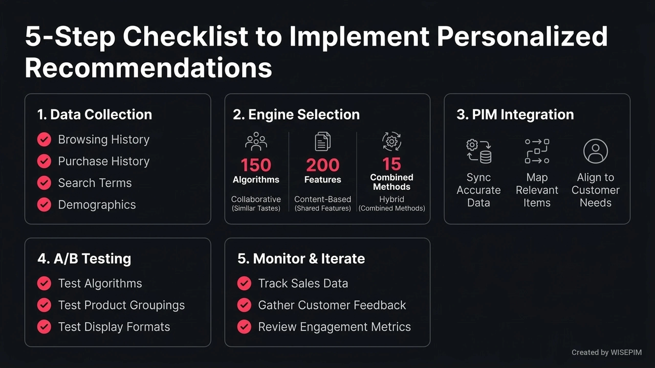 Personalized recommendations are product suggestions tailored to a specific shopper. These suggestions are based on a person's unique interests and shopping habits. Systems create these lists by looking at data like past purchases and search history. This helps shoppers find what they need quickly and makes shopping easier. Most systems use three main methods to find these matches: * Collaborative filtering suggests products based on what other people with similar tastes bought. If two people like the same shoes, the system might suggest the same socks to both. * Content-based filtering recommends items that share features with products a user liked before. For example, if you buy a blue shirt, the system shows you more blue clothing. * Hybrid methods combine both techniques. This provides more accurate and varied suggestions for the shopper. WISEPIM organizes the product data that feeds these recommendation engines. High quality data ensures that every suggestion is relevant to the customer.