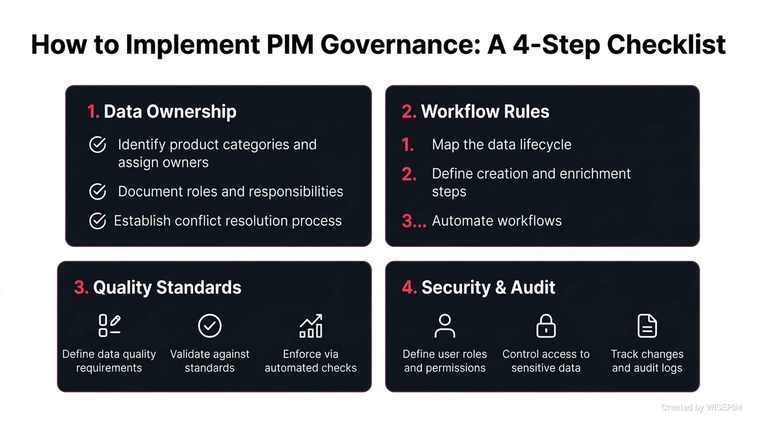 - Data Quality Rules use automated checks to find errors in product data. WISEPIM stops mistakes before they reach your customers. This helps you maintain high standards.
