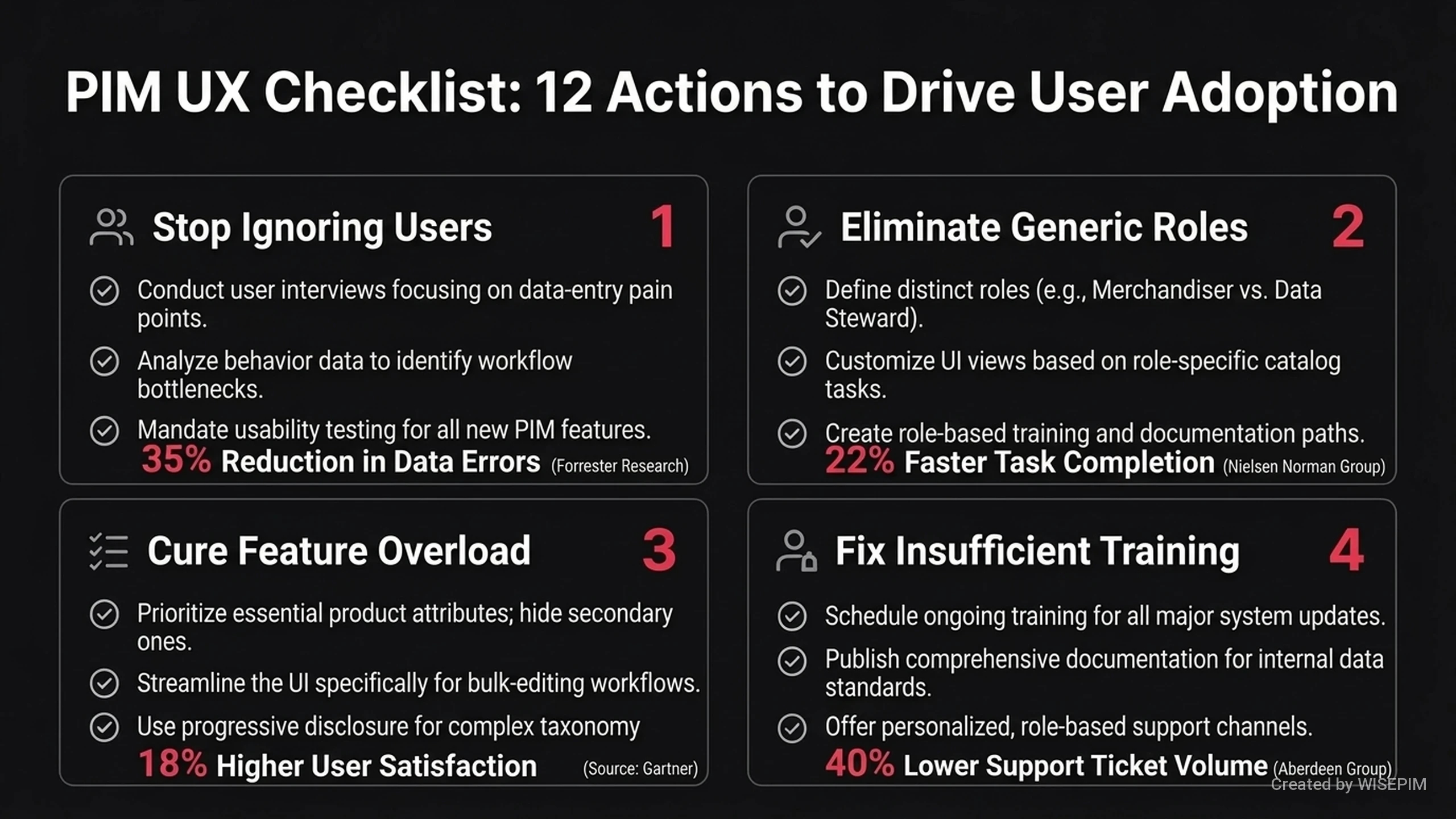 PIM User Experience (UX) focuses on the usability, efficiency, and satisfaction of internal users interacting with a Product Information Management system.