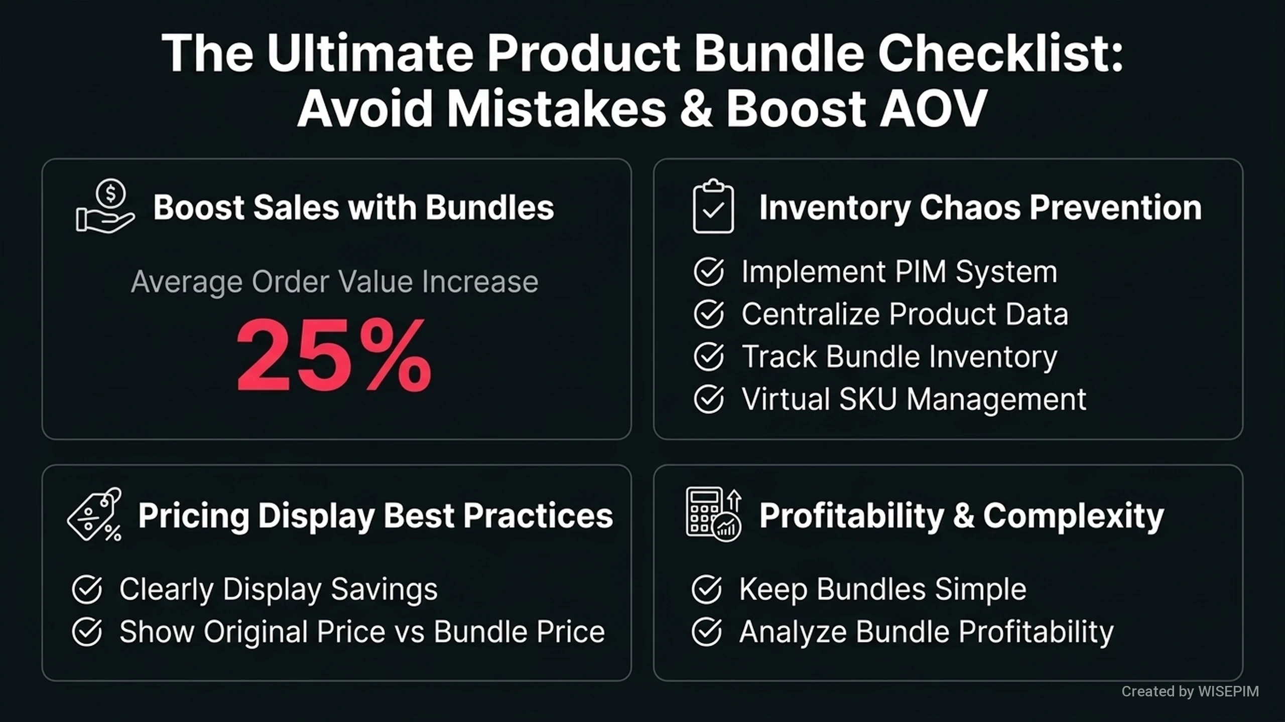 Product bundles are groups of items sold together as a single package. Customers often pay a lower price for the bundle than for each item alone. This method helps businesses sell related products, such as a camera packaged with a lens and a bag. It also helps increase the total amount a customer spends. Bundles can contain physical items, digital files, or services. A PIM system like WISEPIM manages a bundle as a unique product with its own price and description. The system tracks the bundle separately while keeping it connected to the individual items in stock.