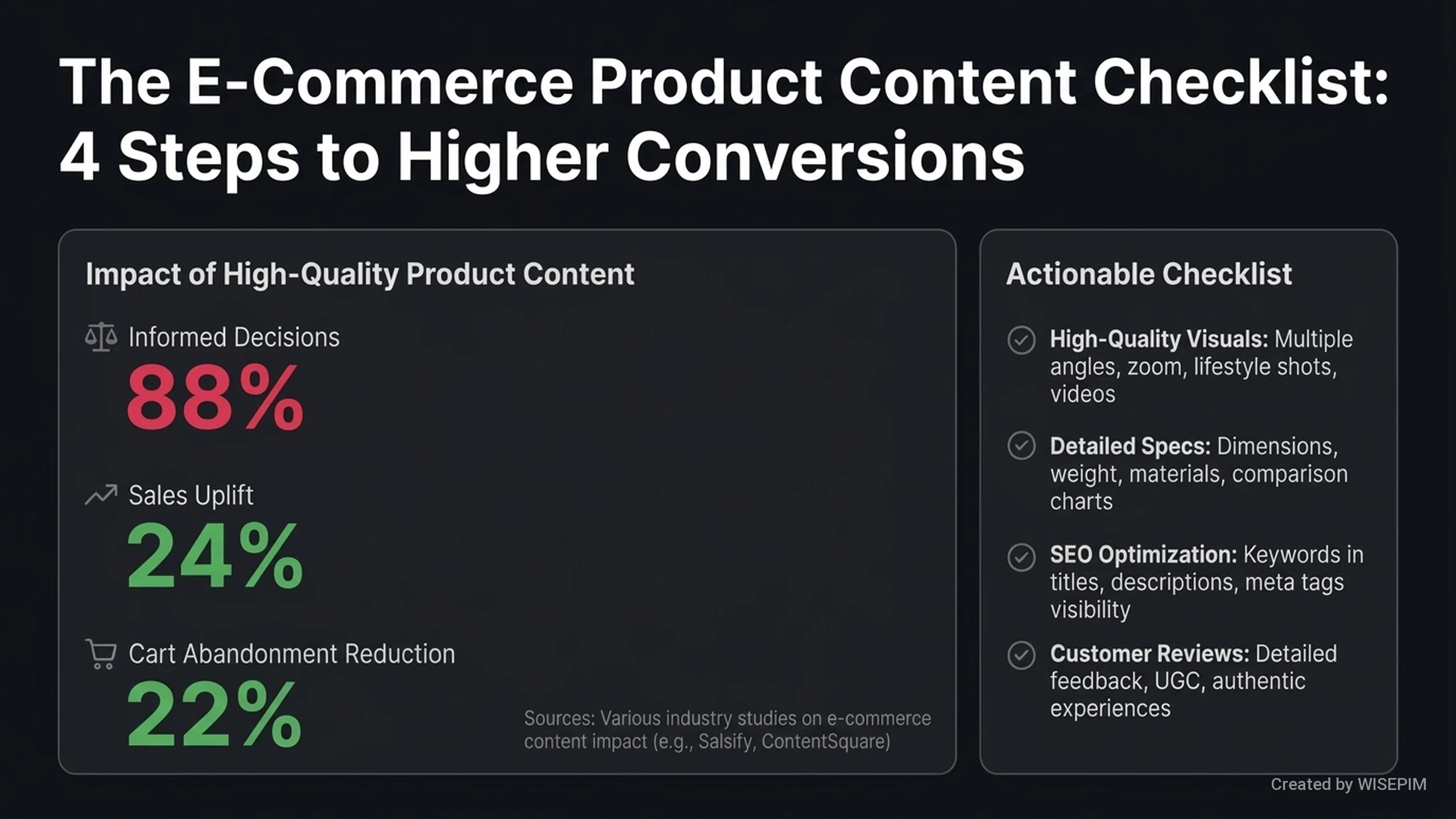 - WISEPIM helps you find and fix mistakes in your product details. You can add missing information so customers always see the correct facts.