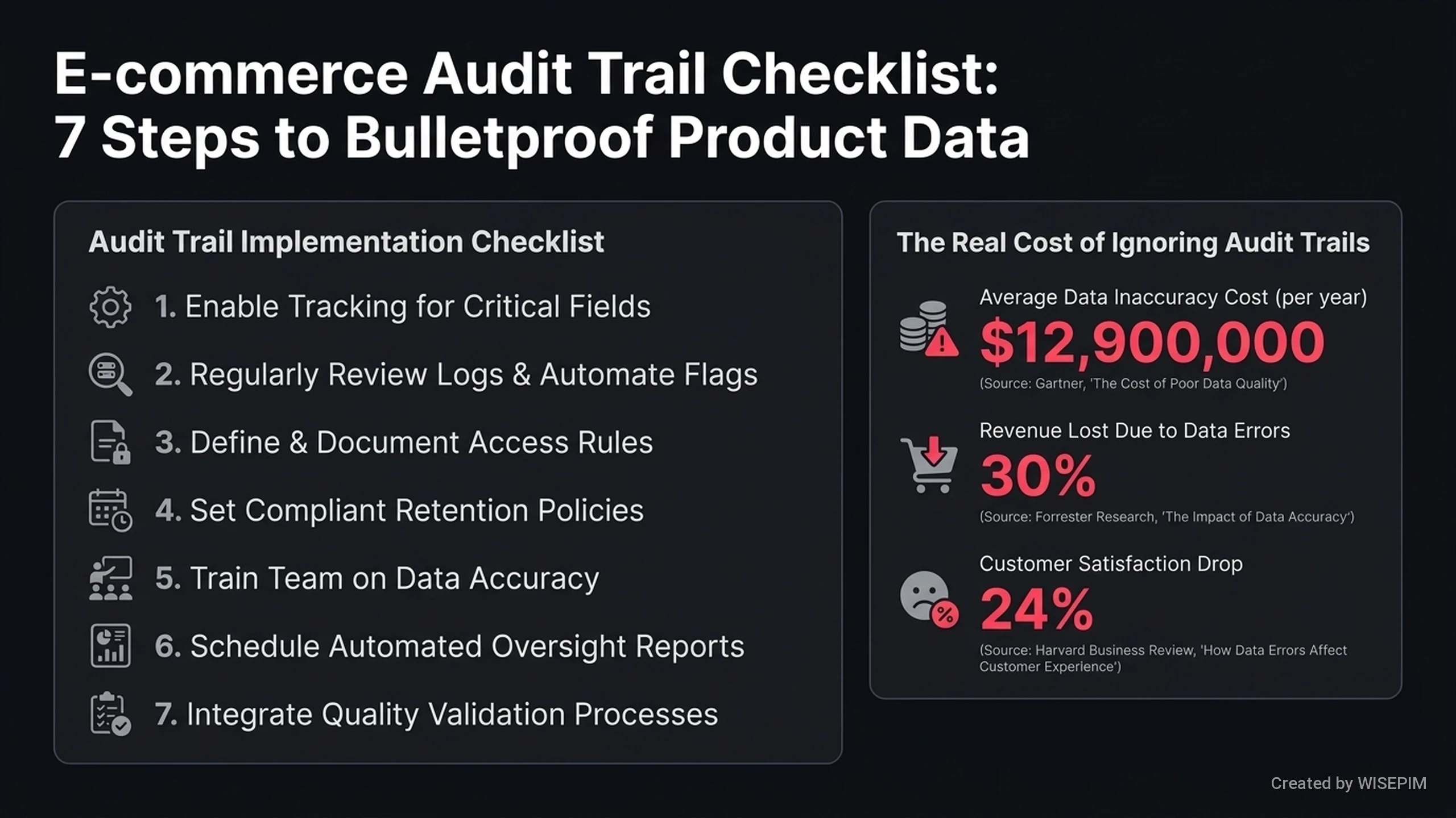 A product data audit trail is a digital record that tracks every change made to product information. It acts like a history book for your data. The log shows who edited the information, what they changed, and when the update happened. This history tracks a product from its creation to its final publication. Teams use these logs to keep data accurate and meet legal rules. If an error appears on your webshop, the audit trail helps you find the mistake quickly. Tools like WISEPIM use these trails to help you stay organized and fix errors.