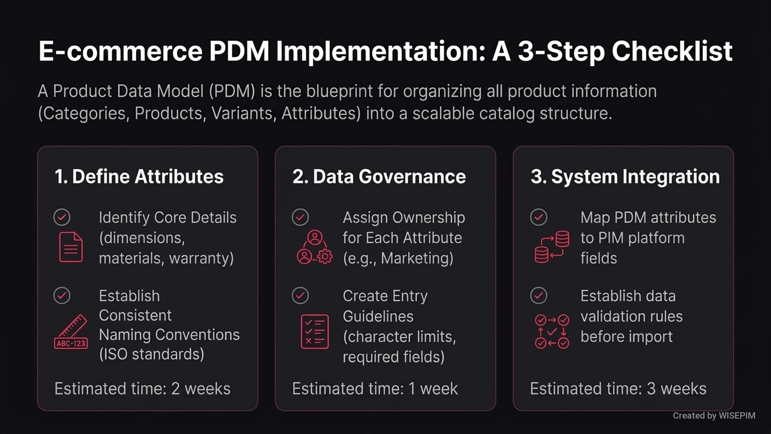 A Product Data Model (PDM) is a plan that defines how you organize product information in a PIM system. It acts like a blueprint for your data. This model identifies main items like products, categories, and brands. It also lists specific details called attributes. These are traits like color, size, or material. The PDM shows how different pieces of information connect to each other. This structure keeps your data organized and easy to find. It helps you manage complex items like product variants. A clear model ensures you send accurate product details to all your sales channels. WISEPIM helps you build a strong PDM to keep your product data clean.