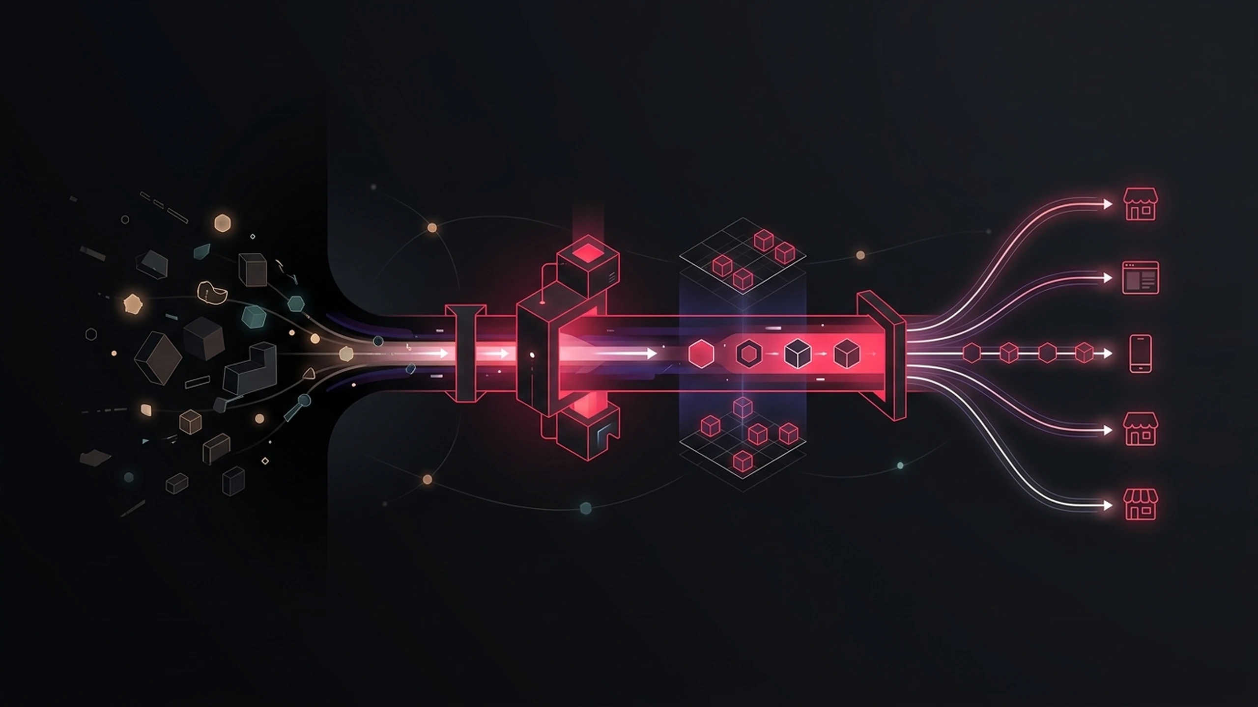 A product data transformation pipeline is a series of automated steps to convert raw product data into a structured format for various channels and uses.