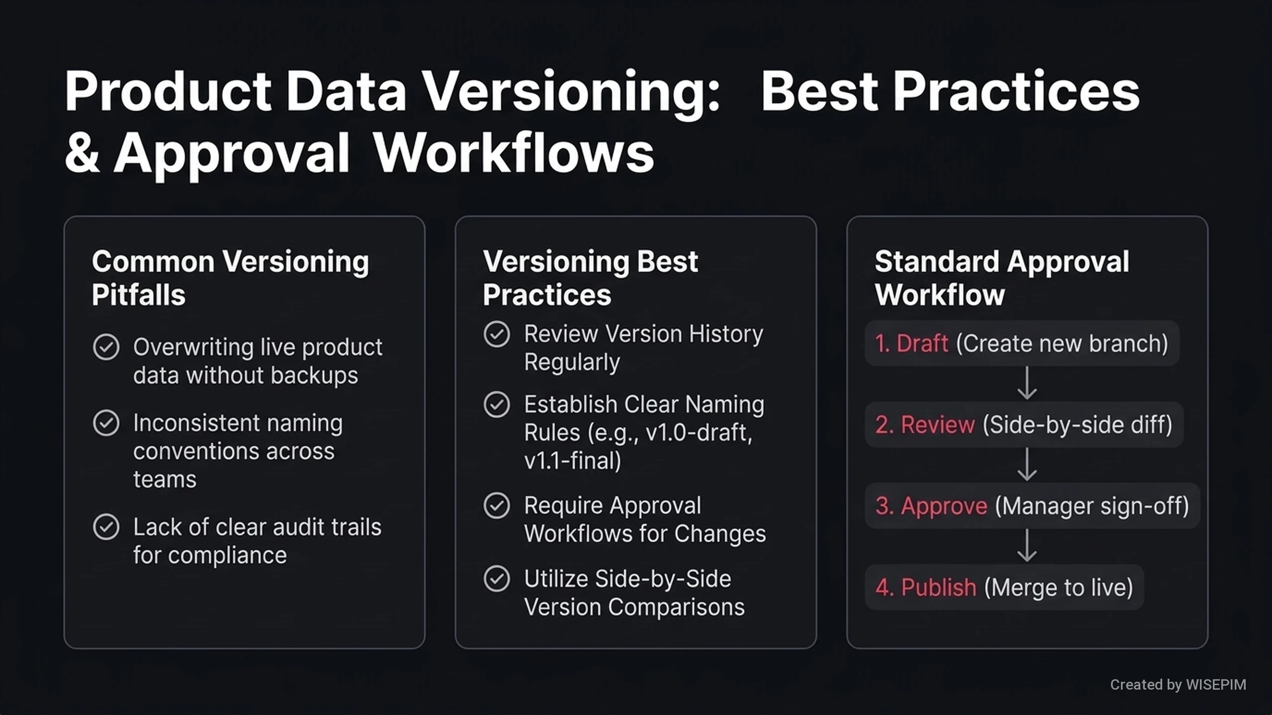 A product data versioning system is a tool that tracks every change made to your product information. Online stores update prices, descriptions, and images often. Errors can happen during these frequent updates. Without a history of these changes, finding and fixing a mistake is slow and difficult. This system acts like an undo button for your product catalog. If a new update has an error, you can quickly restore the previous version. This helps you keep your store accurate for customers. It also shows who changed the data and when. Systems like WISEPIM use versioning to help you manage your data safely.