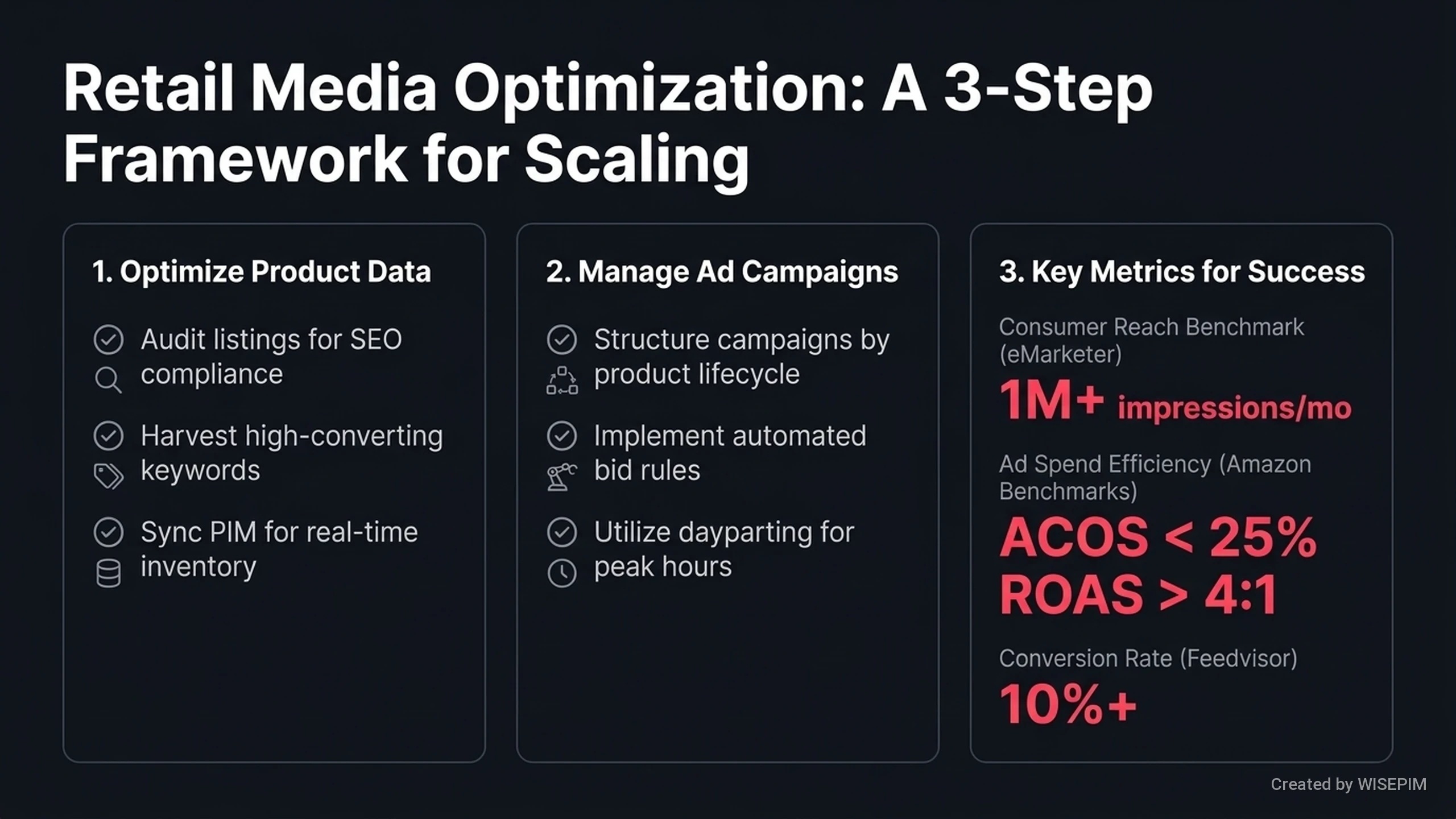 Retail media optimization is the process of improving ads shown directly on e-commerce sites like Amazon or Walmart. It helps brands reach shoppers at the exact moment they are ready to buy. This method is effective because it uses the retailer's own data rather than third-party cookies. Brands can see exactly how much money they spent and how many sales they made. Optimization is necessary because advertising space is competitive and expensive. If you do not manage your campaigns carefully, the cost of each click can quickly reduce your profit margins. High-quality product data is the foundation of these campaigns. Retailer algorithms prioritize product listings that are complete and accurate. Using a tool like WISEPIM ensures your product feeds are always ready for these channels. When you optimize your data, you often see higher search rankings and lower advertising costs. This creates a cycle where better ad performance leads to more organic visibility. Ultimately, this reduces the total cost of finding new customers.