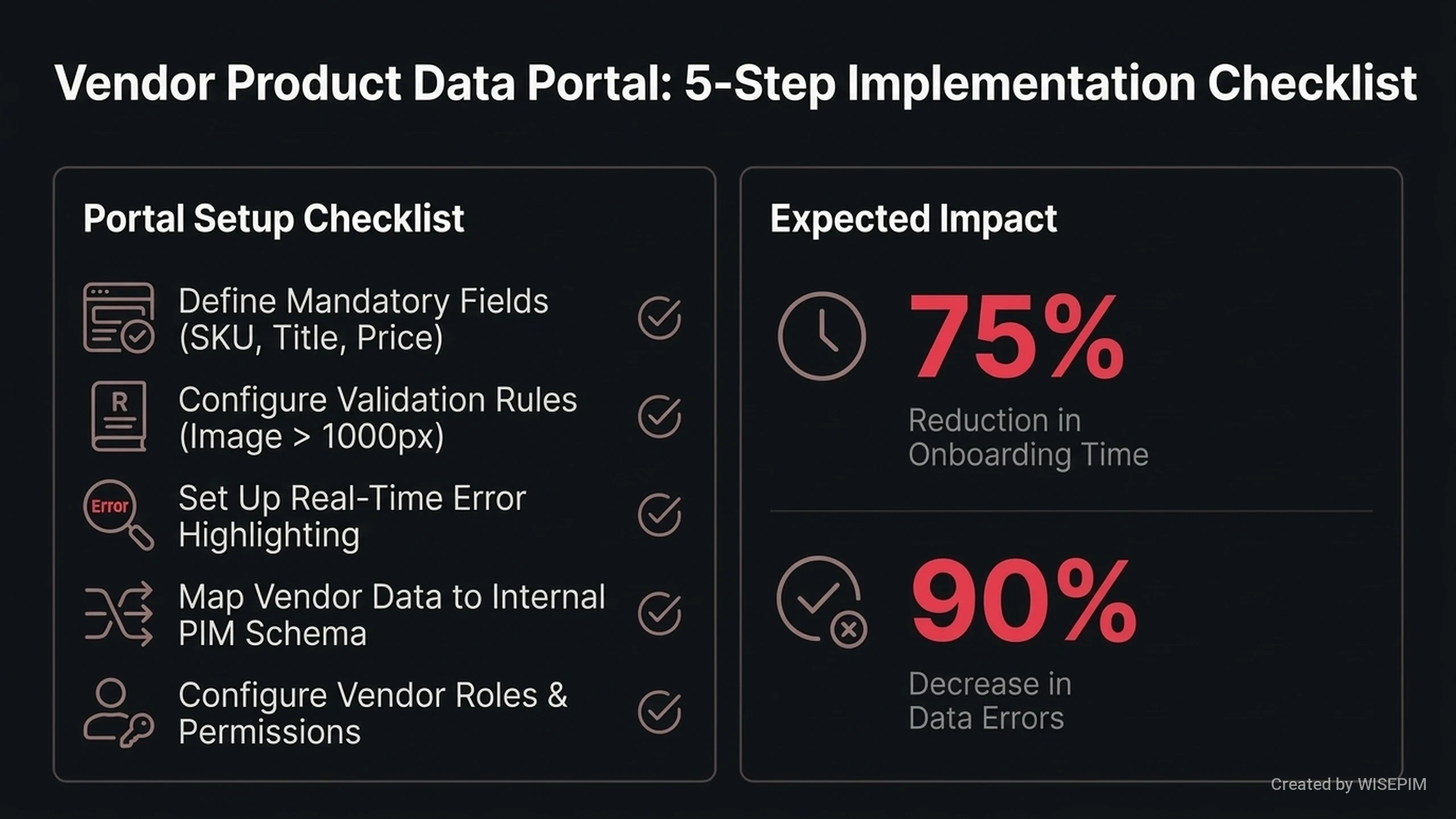 - WISEPIM provides a portal to onboard new suppliers quickly. Suppliers upload product details directly into the system in the correct format.