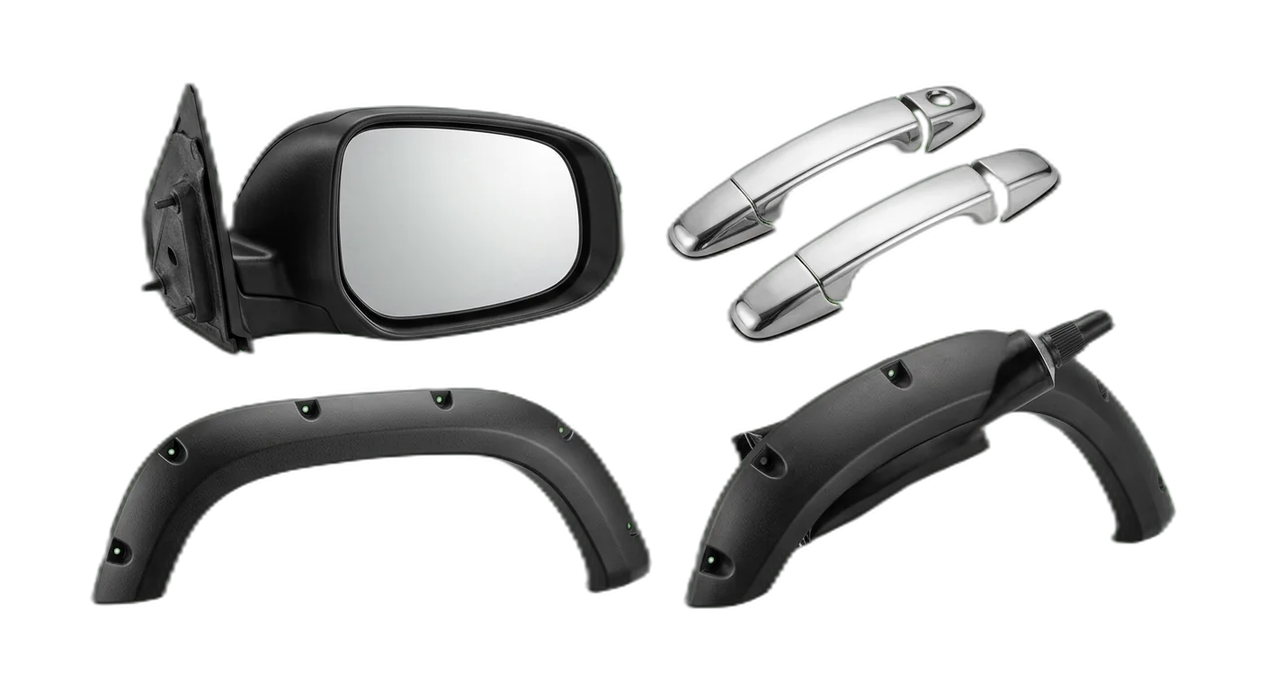 Accessories (floor mats, phone holders, roof racks) and styling parts (spoilers, body kits) serve different buyer needs than functional replacement parts. Group them in distinct top-level categories to match buyer intent.