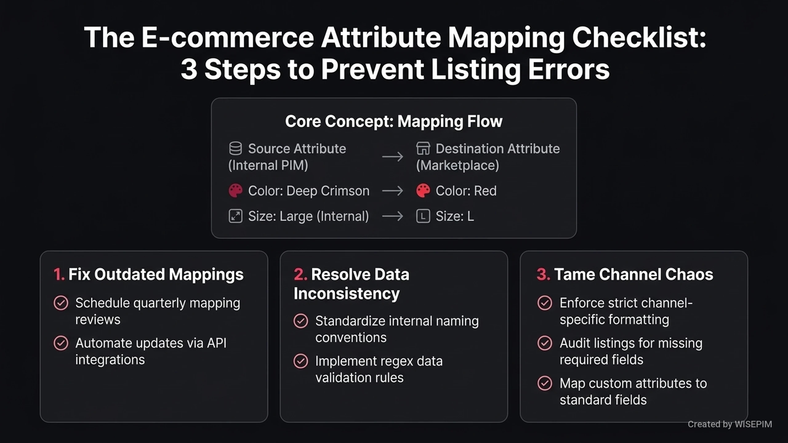Attribuut mapping is het proces van het afstemmen van productattributen uit een bronsysteem met de vereiste attributen van een doelkanaal of -systeem, voor dataconsistentie en compatibiliteit.