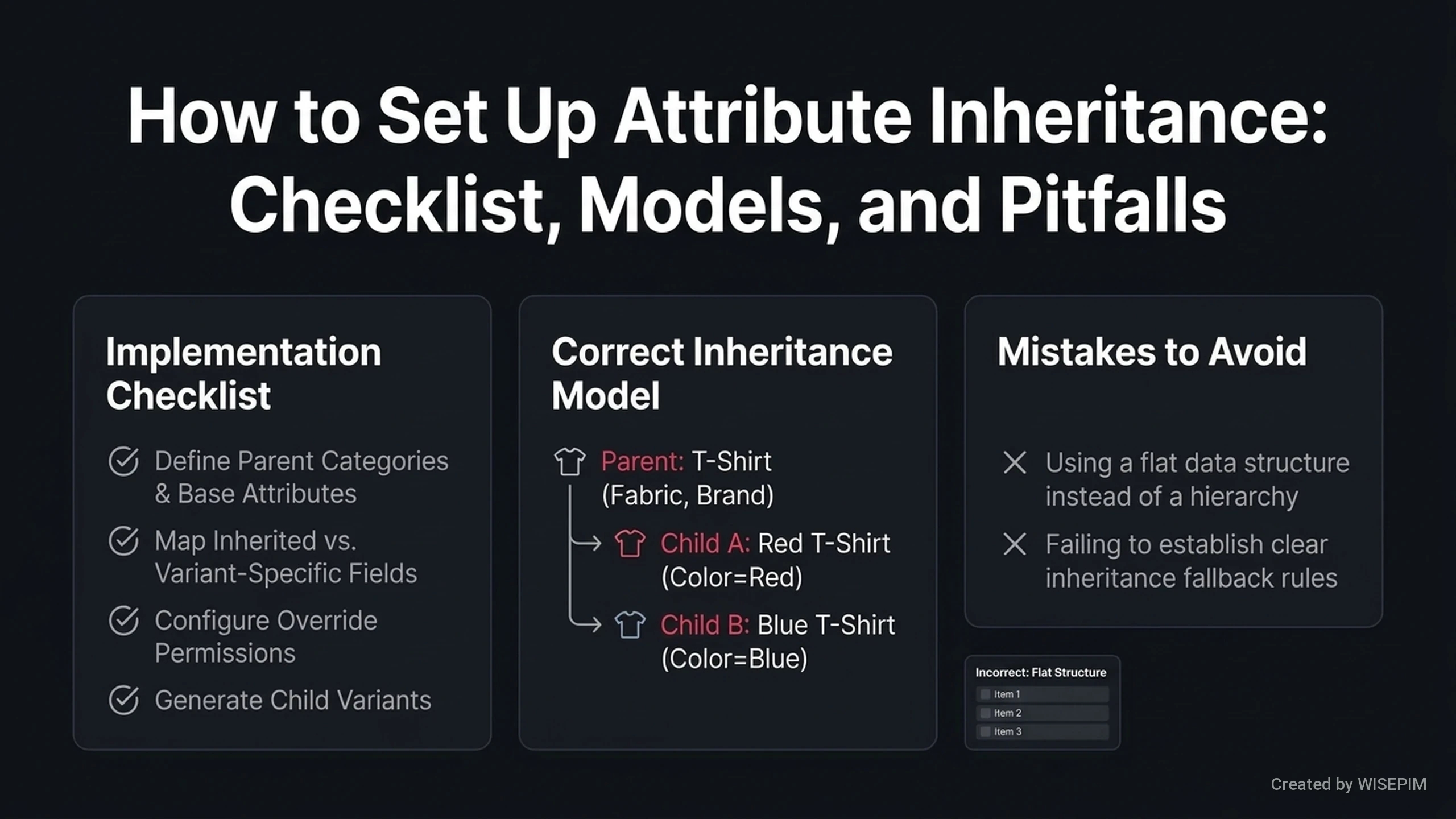 Attribuut overerving is een PIM-functionaliteit waarbij productattributen automatisch worden doorgegeven van bovenliggende categorieën of masterproducten aan onderliggende producten of varianten.