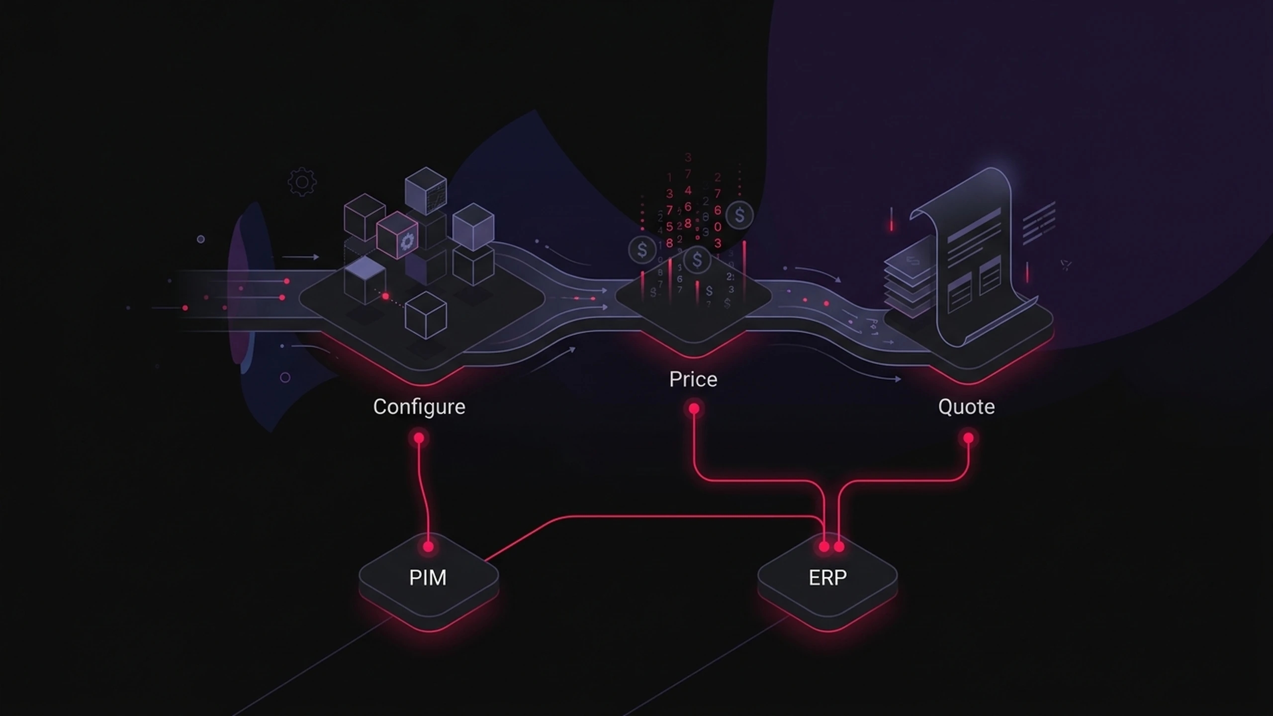CPQ integratie koppelt configuratie-, prijs- en offertesoftware aan systemen zoals PIM en ERP om de verkoopcyclus voor complexe producten te automatiseren.