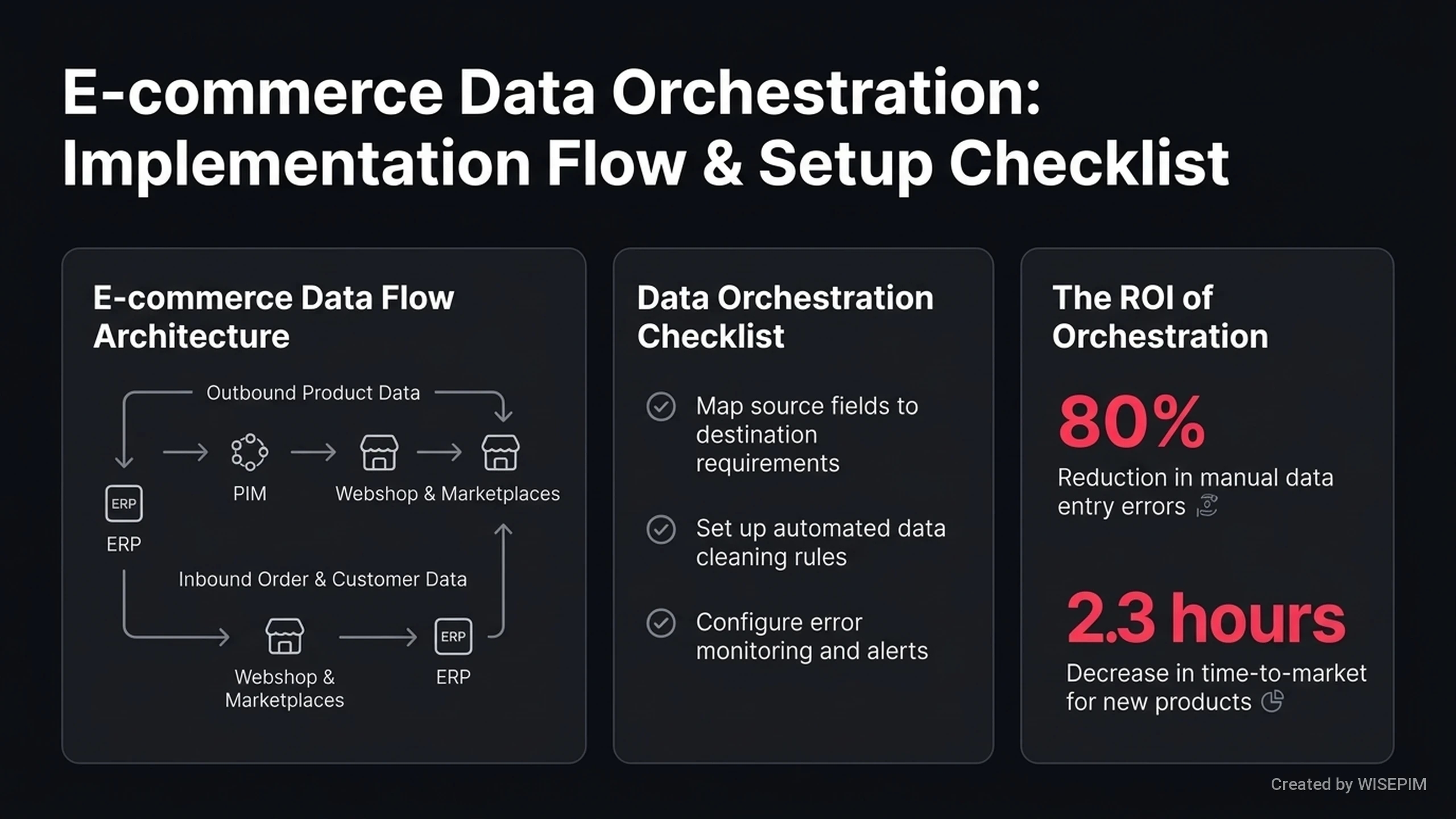 - WISEPIM is de centrale plek voor al uw productdata. Het systeem verplaatst en bewerkt informatie tussen verschillende systemen automatisch. Zo stroomt uw data altijd soepel door uw bedrijf.