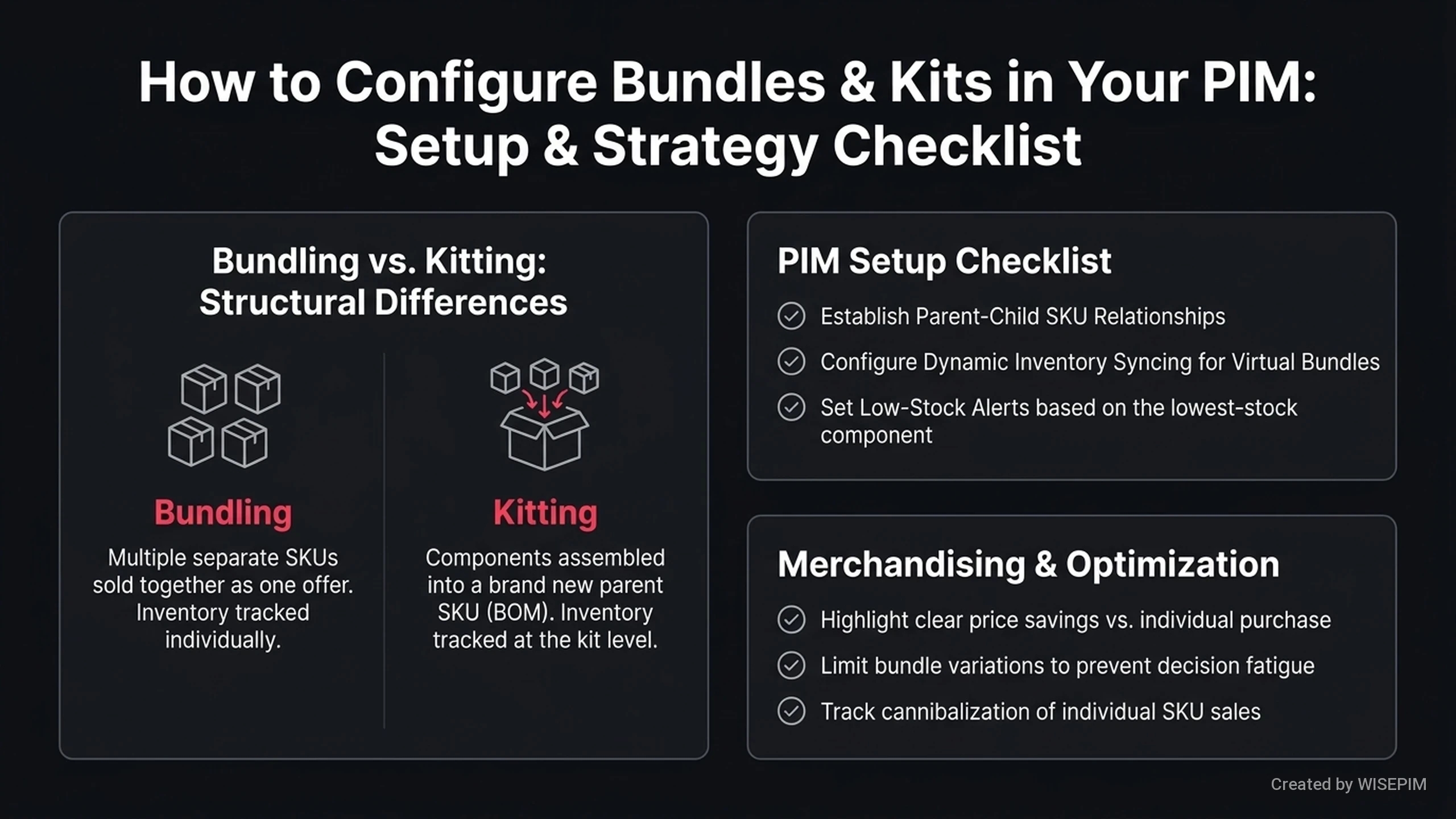 Product bundling verkoopt meerdere producten als één pakket voor één prijs, terwijl kitting individuele componenten combineert tot een nieuwe, verkoopbare SKU. Beide verhogen de gemiddelde orderwaarde.