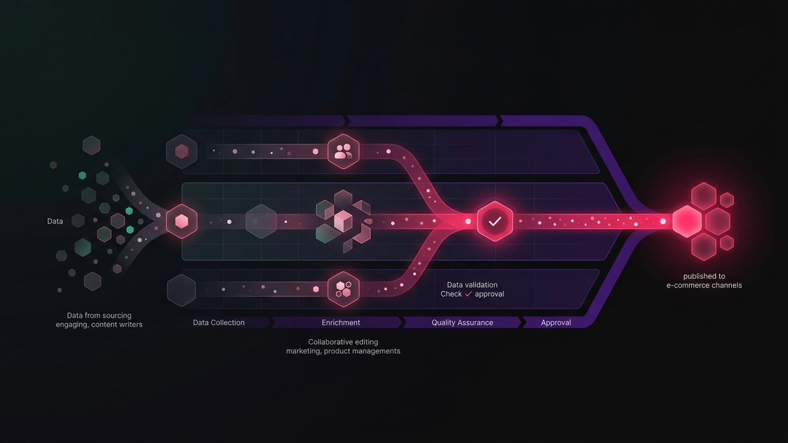 Een gestructureerd proces binnen een PIM-systeem dat meerdere teams in staat stelt om gezamenlijk productdata bij te dragen en goed te keuren.