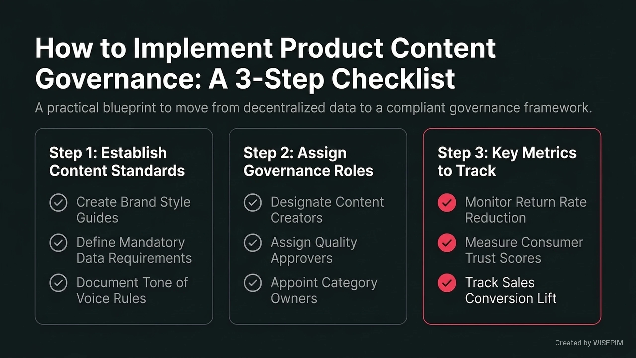 productcontent governance definieert beleid, processen en rollen om de kwaliteit, consistentie en compliance van productcontent op alle kanalen te waarborgen.