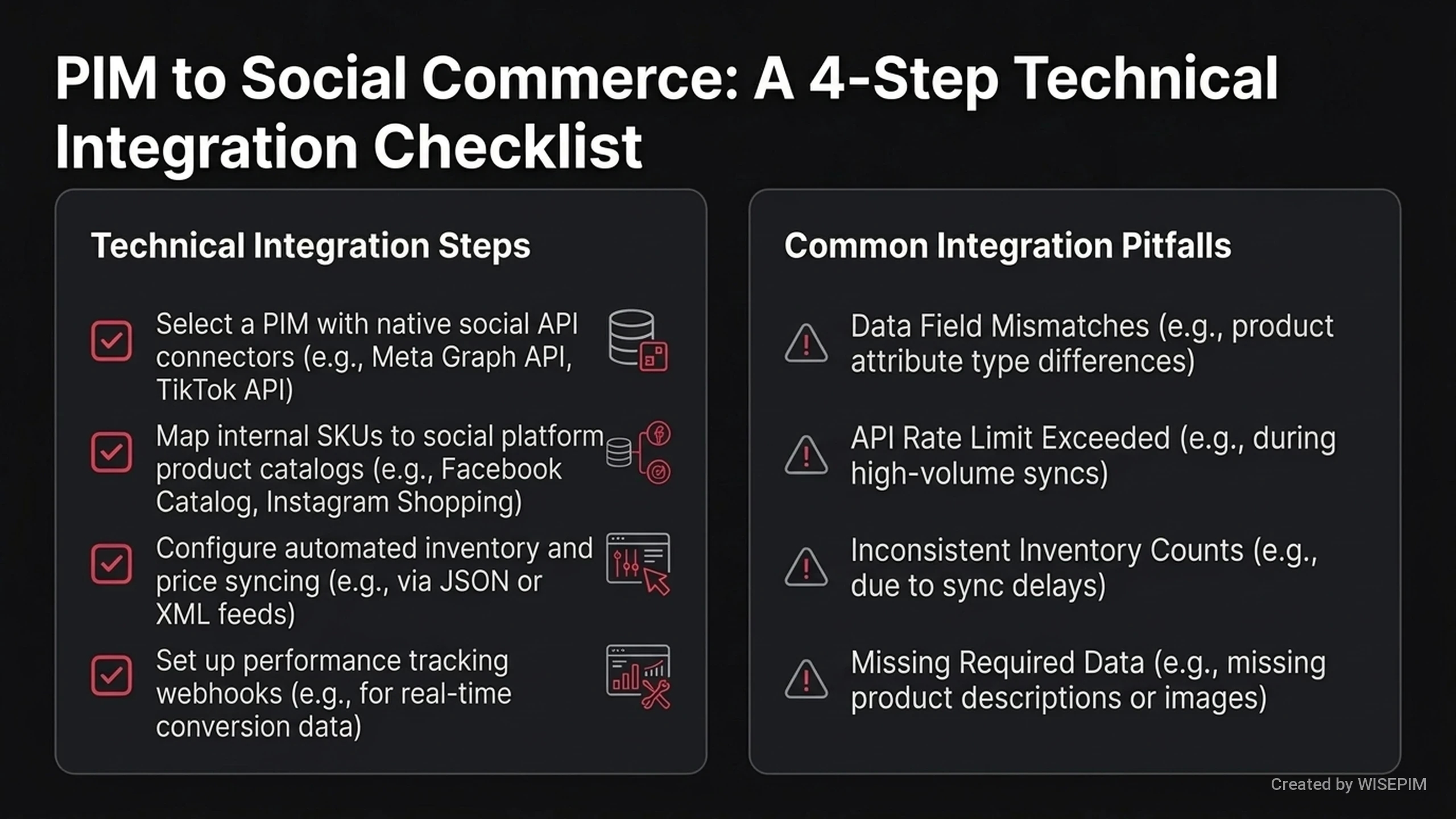 Het proces waarbij productdata uit een PIM of e-commerce backend direct wordt gekoppeld aan social media kanalen voor een naadloze winkelervaring.