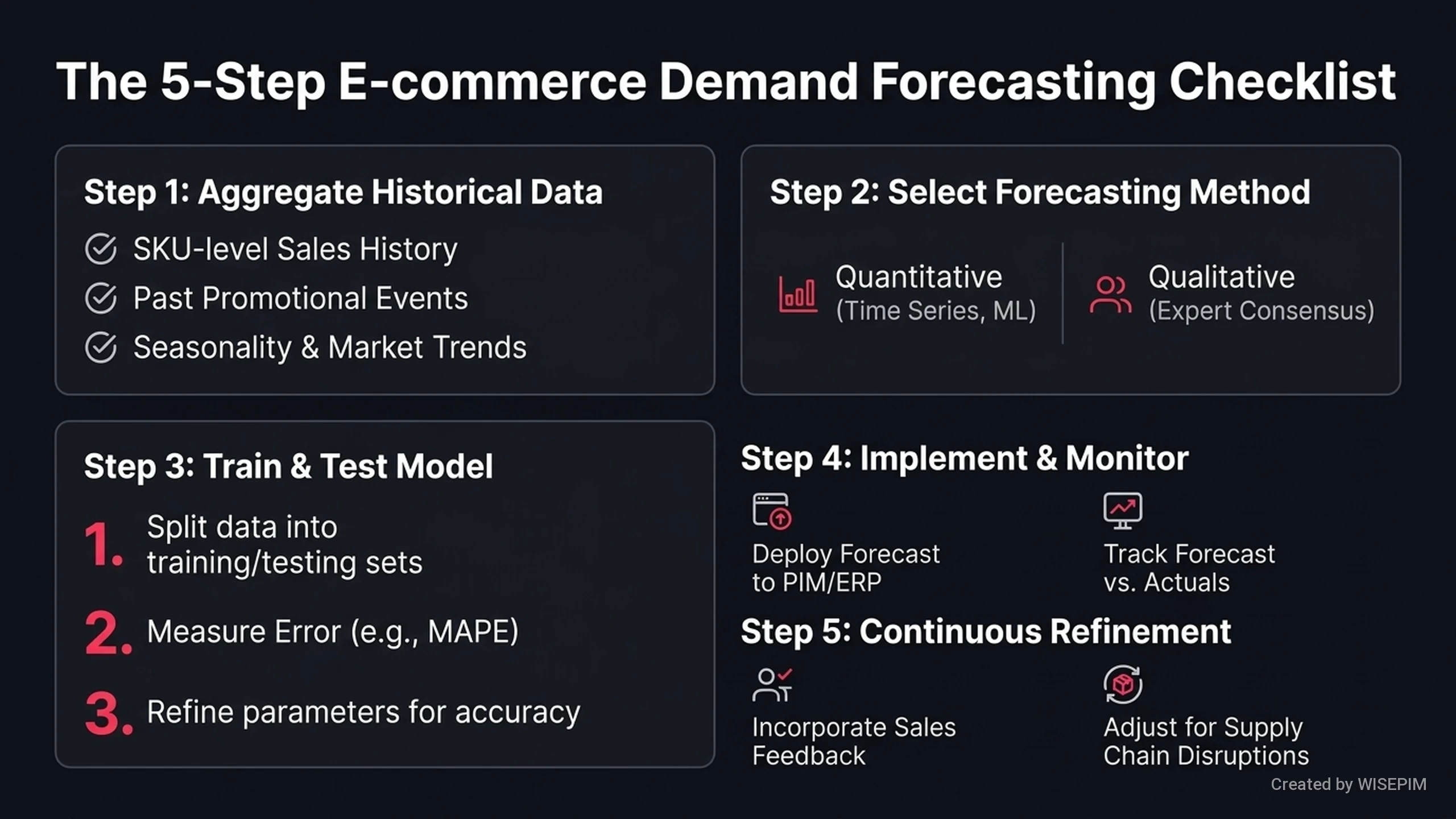 - WISEPIM stuurt actuele productdata direct naar uw forecasting tools. U hoeft gegevens niet meer handmatig voor te bereiden. Dit bespaart u tijd.